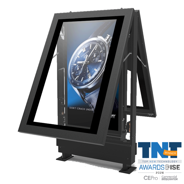 The 75″ ePaper Cassette is Agile’s newest 2026 product release, designed specifically for the DOOH market. Using Kaleido™ 3 technology from E Ink, it uses 1/10 the power of LCD or LED, and even has a lower carbon footprint than backlit printed signs.